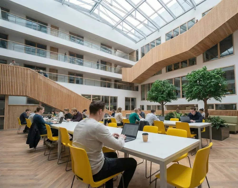 Klimaatplafonds zorgen voor een aangenaam en constant binnenklimaat door te verwarmen en te koelen. Dit gebeurt geruisloos en energiezuinig, wat bijdraagt aan een hogere productiviteit en welzijn van medewerkers. Bovendien bespaart u ruimte, aangezien radiatoren en airco-units overbodig worden.